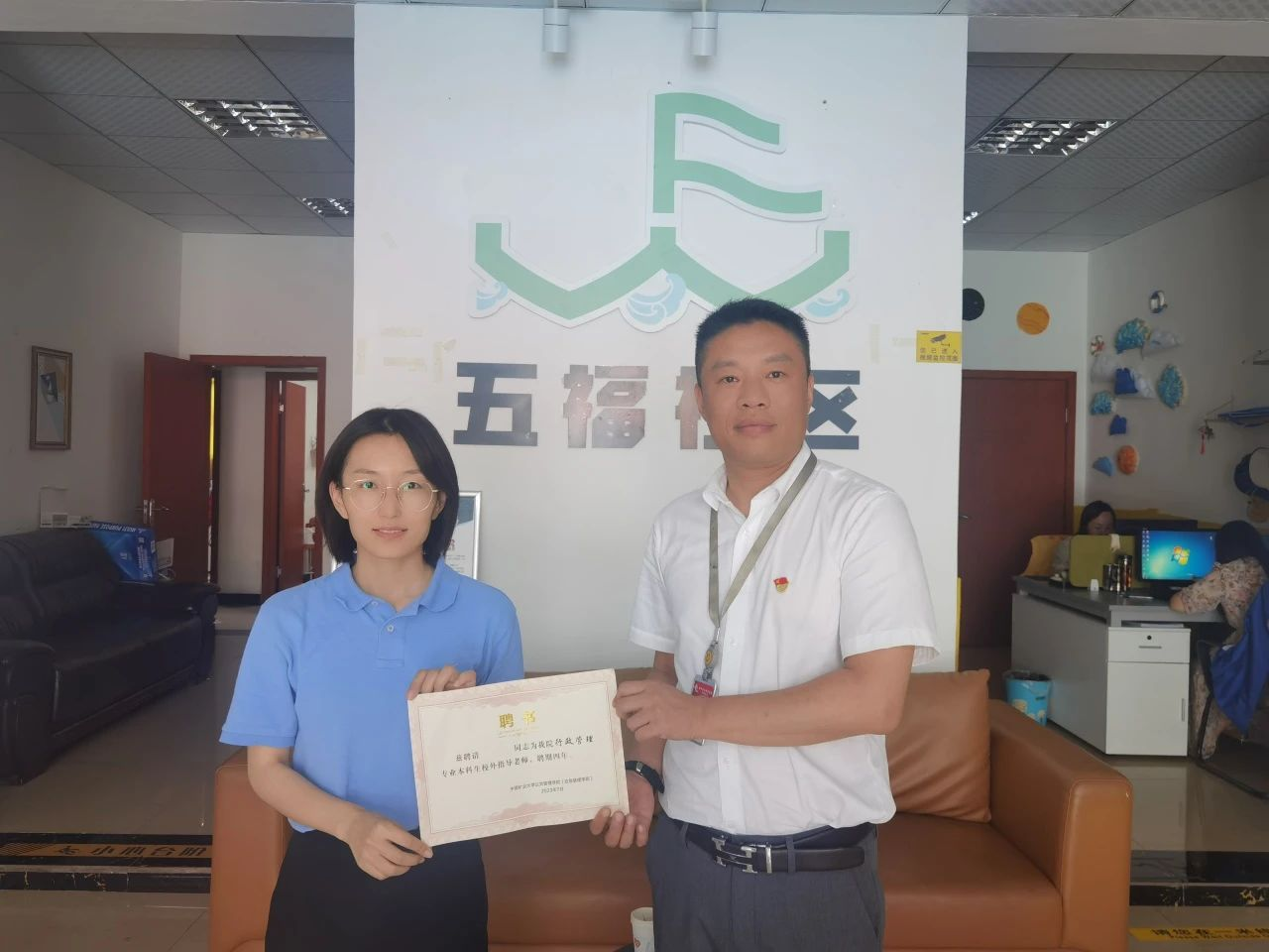 王俐老师与陈书记进行聘任仪式
