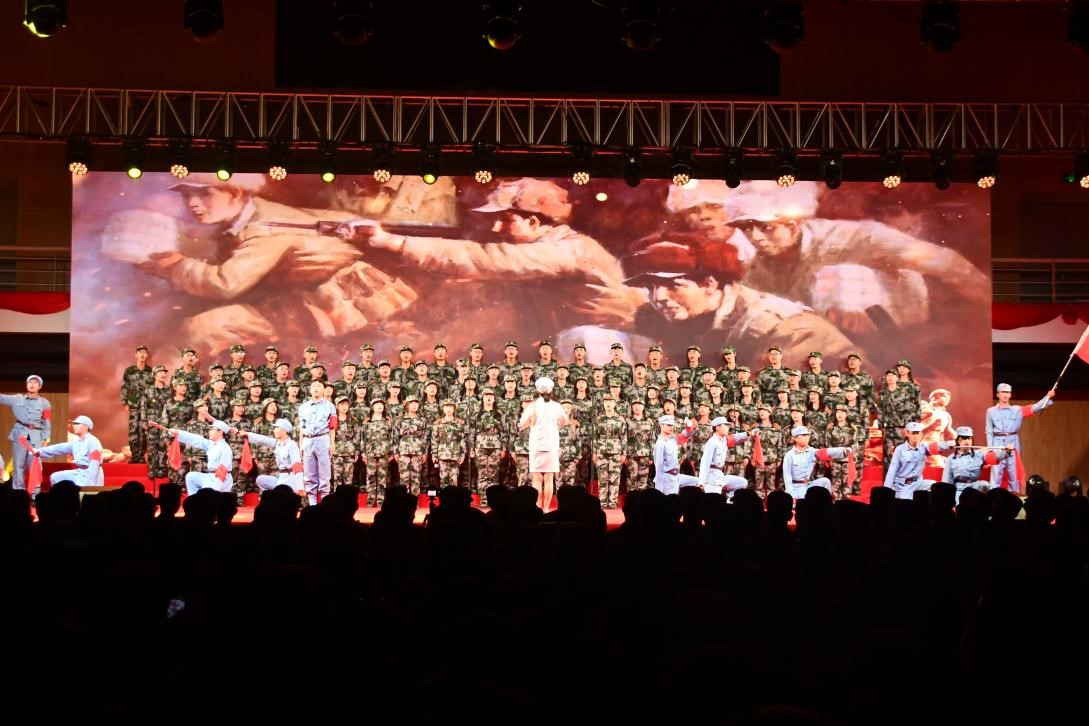 一首熟悉的威廉希尔williamhill校歌将现场气氛推向高潮,嘹亮的歌声流淌在人山人海的礼堂里,激起观众们的热情。随后,威廉希尔合唱队又带来了《保卫黄河》,歌词中唱到“风在吼,马在叫,黄河在咆哮”,合唱队队员们挥舞国旗,迎风飘扬,振奋人心,为在场师生呈现了一场精彩纷呈的视听享受。