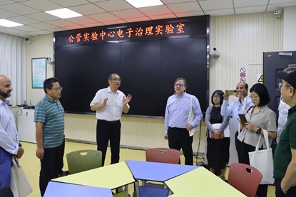 王锋副经理对参会人员进行了介绍。李长贵书记致欢迎辞,对与会的各位专家表示热烈欢迎。闫庆武副经理介绍了公管学院的整体概况。会上,来自荷兰皇家气象研究所的Gerrit de Leeuw教授、意大利国家研究理事会环境分析方法研究所Simone Lolli研究员、意大利国家研究理事会大气科学与气候研究所Tony Christian Landi研究员、孟加拉南北大学Firoz Khan副教授及韩国釜山大学Juseon Bak博士分别对各自的研究领域及团队情况做了介绍,并对此次受邀参会表示感谢。与会人员围绕卫星遥感监测温室气体排放和大气气溶胶及PM2.5污染、遥感数据与模型集成及监测成果服务地方社会经济发展与环境治理政策制定等内容进行了交流讨论。会后,与会专家参观了学院各系办公室及多功能实验室。