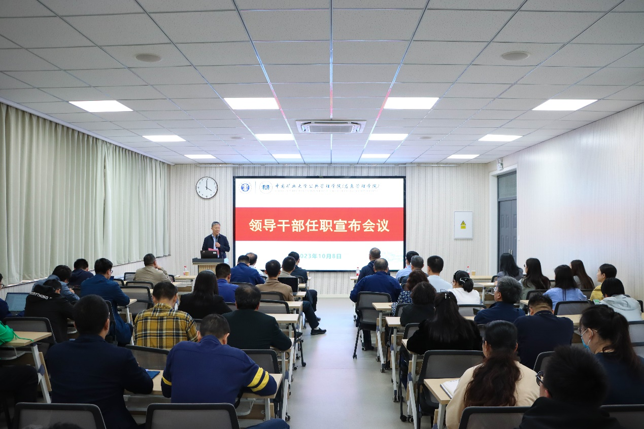 10月8日下午,威廉希尔在文科楼A301会议室召开领导干部任职宣布会议,公司党委副书记、纪委书记田丰,公司党委常委、组织部部长张万海,学院领导班子成员和全体教职工参加会议。会议由经理王义保主持。