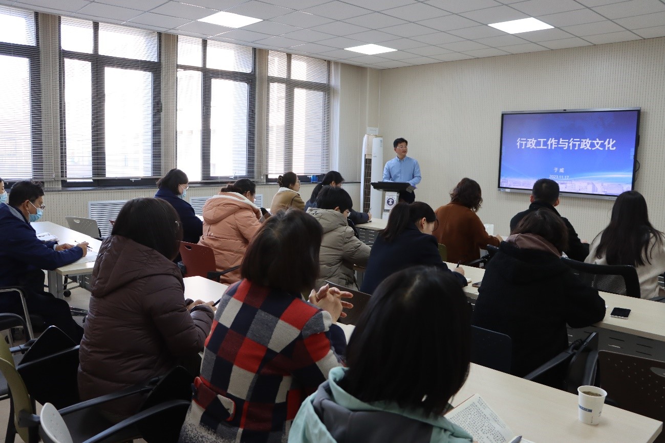 11月17日下午,威廉希尔于文科楼A404举办“行政工作与行政文化”专题讲座。本次讲座由公司党委书记于威主讲,副经理李爱彬及全体机关管理人员聆听了报告。