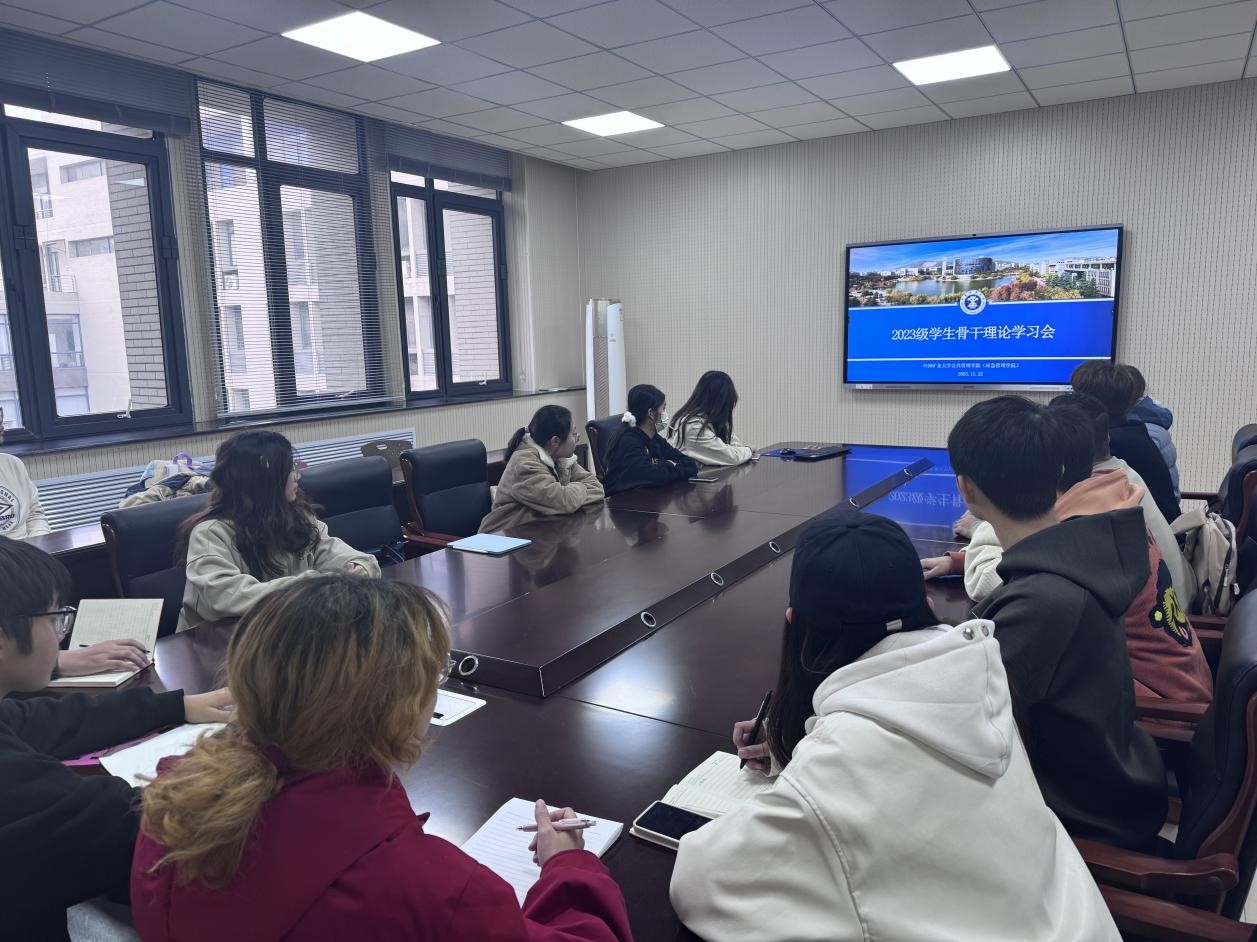 为提高员工骨干的理论知识水平,11月22日下午,威廉希尔于文科楼A406会议室开展2023级员工骨干理论学习会。2023级辅导员陈妍主持本次会议,兼职辅导员王新及2023级各班班长、团支书参会。