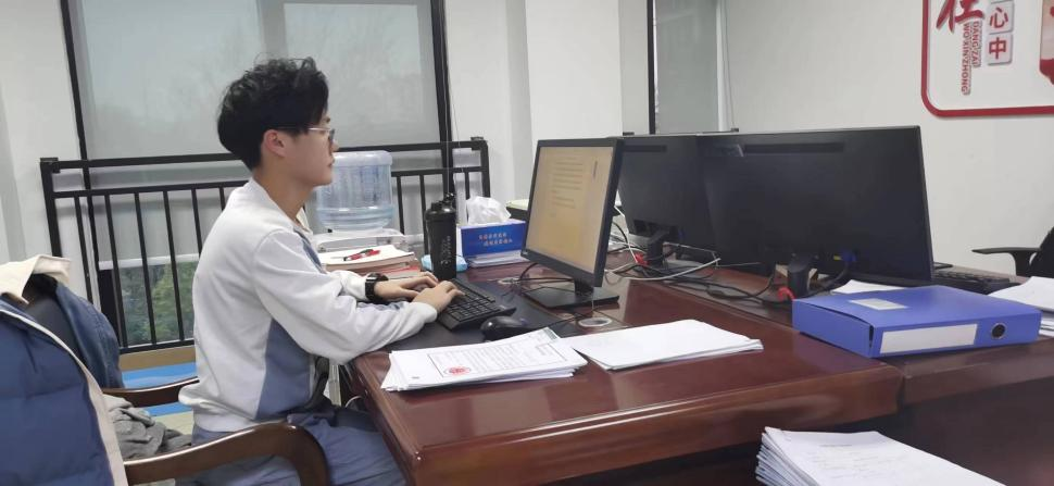 我的日常工作是在领导指示下进行信息收发、材料整理、调研留痕、通讯撰写。我平常与文件材料打交道的比较多,但也跟着领导参加了徐州市政企交融汇等活动。我觉得这几周的实习很充实,也让我更加向往社会,向往可以在社会中做出自己的贡献。——田珉技