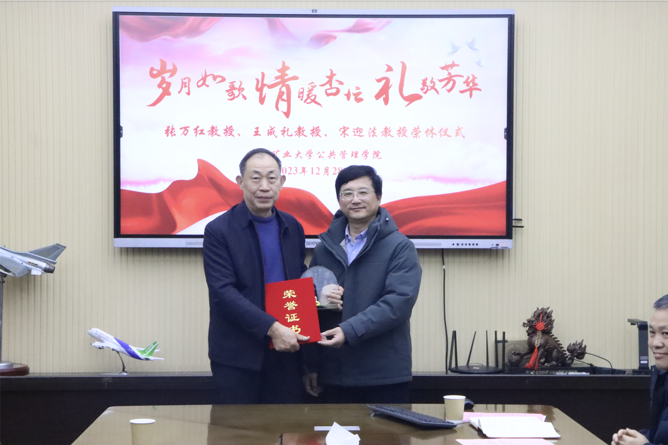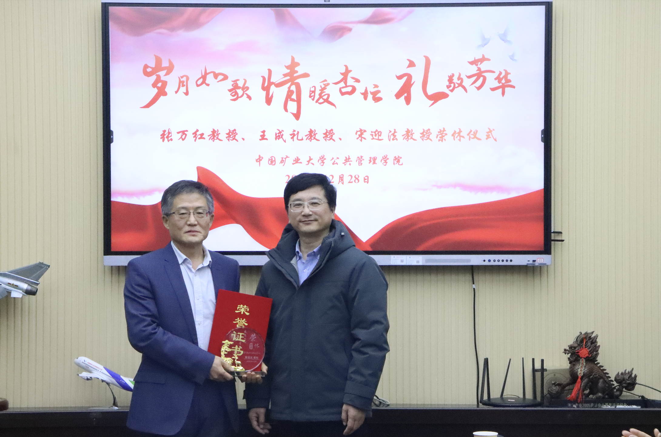 12月28日下午,学院于文科楼A508举办张万红教授、王成礼教授、宋迎法教授荣休仪式。院领导班子出席仪式,各办公室、系所教师代表参加。仪式由李爱彬副经理主持。