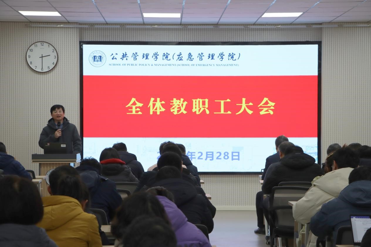 于威书记首先向全体教职工致以新春的问候和祝福。他指出,2024年是学校建校115周年,是学校推进“十四五”改革与事业发展的奋进之年,也是学院“人才工作突破年”,学院将顺势而为谋划工作,希望全体教职工奋发拼搏、有所作为,加强交流合作,提升科学研究和服务社会水平,开创学院事业高质量发展新局面。此外,他强调,要抓实抓细安全稳定工作,增强安全意识,共建和谐校园。