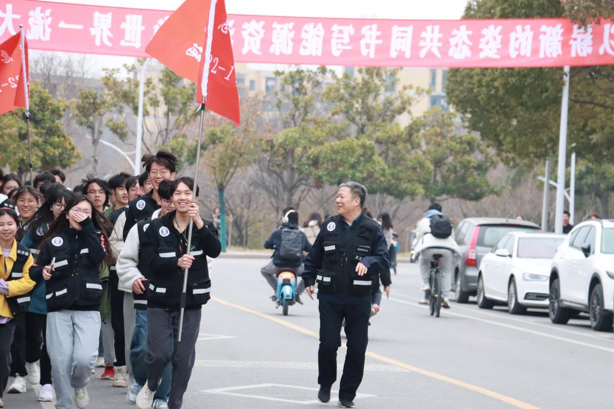 全体人员集合完毕后,活动正式开始。首先进行授旗授臂章仪式。王义保经理授予各班班长班旗及大队长臂章,各班大队长向中队长分发臂章。随后,王义保经理以“强国有我,应急有我”为主题寄语应急学子,希望应急管理专业的同学可以展现出“应急人”的风采,激励同学们接续奋斗、砥砺前行。在应急管理专业教师依次进行发言后,王义保经理宣布实训活动开始。由王义保经理领跑,各班旗手带领全体同学围绕一食堂、桃苑慢跑一圈,途经图书馆、第一运动场等。最后,王义保经理对此次实训进行总结,希望应急管理专业同学能够逐步成为优秀的应急管理人。